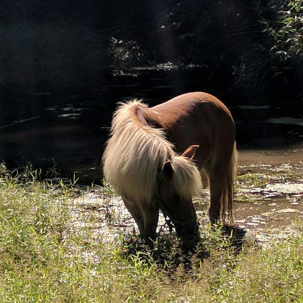 山の中に放し飼いになっているお馬さんは、ときにより泥んこまみれにも…。